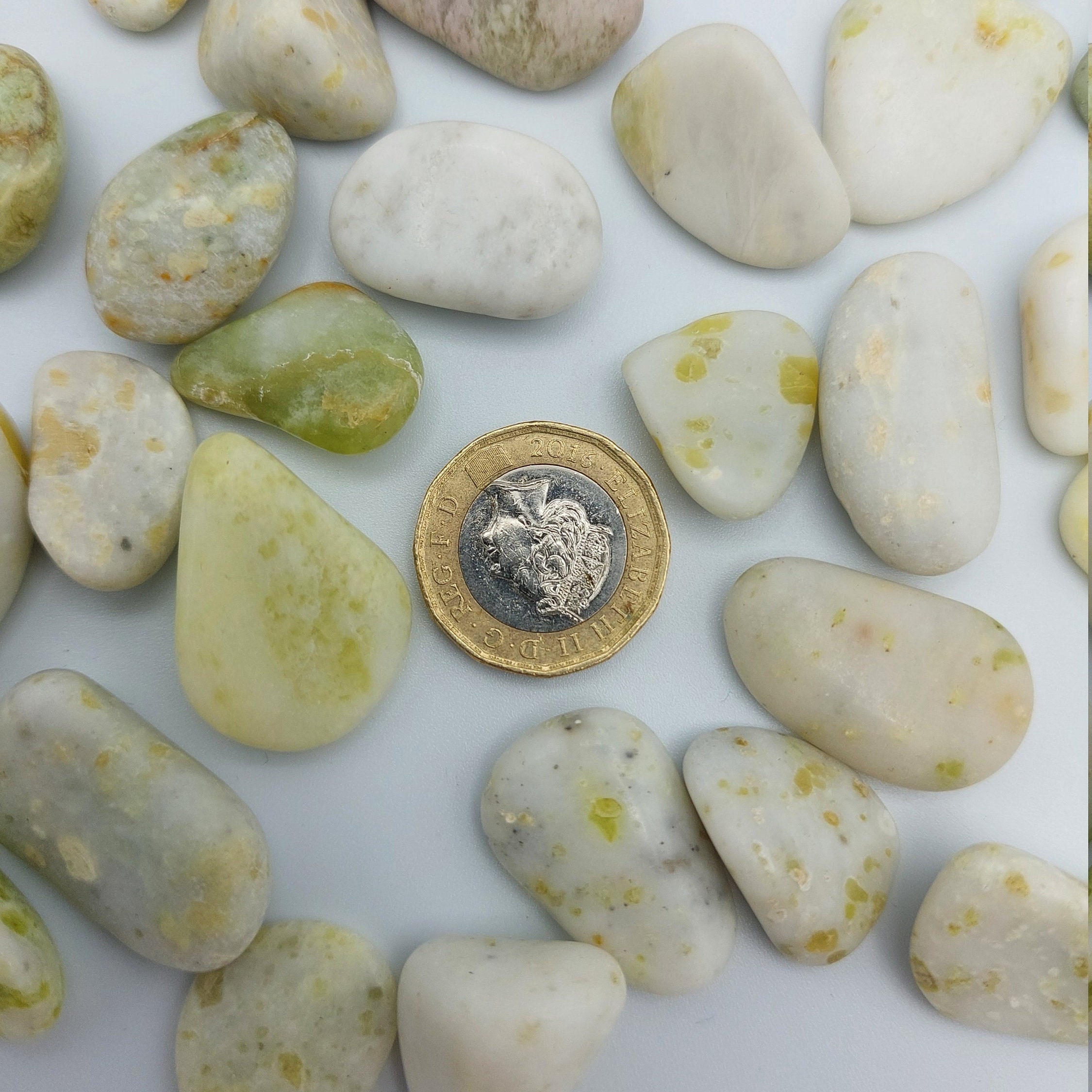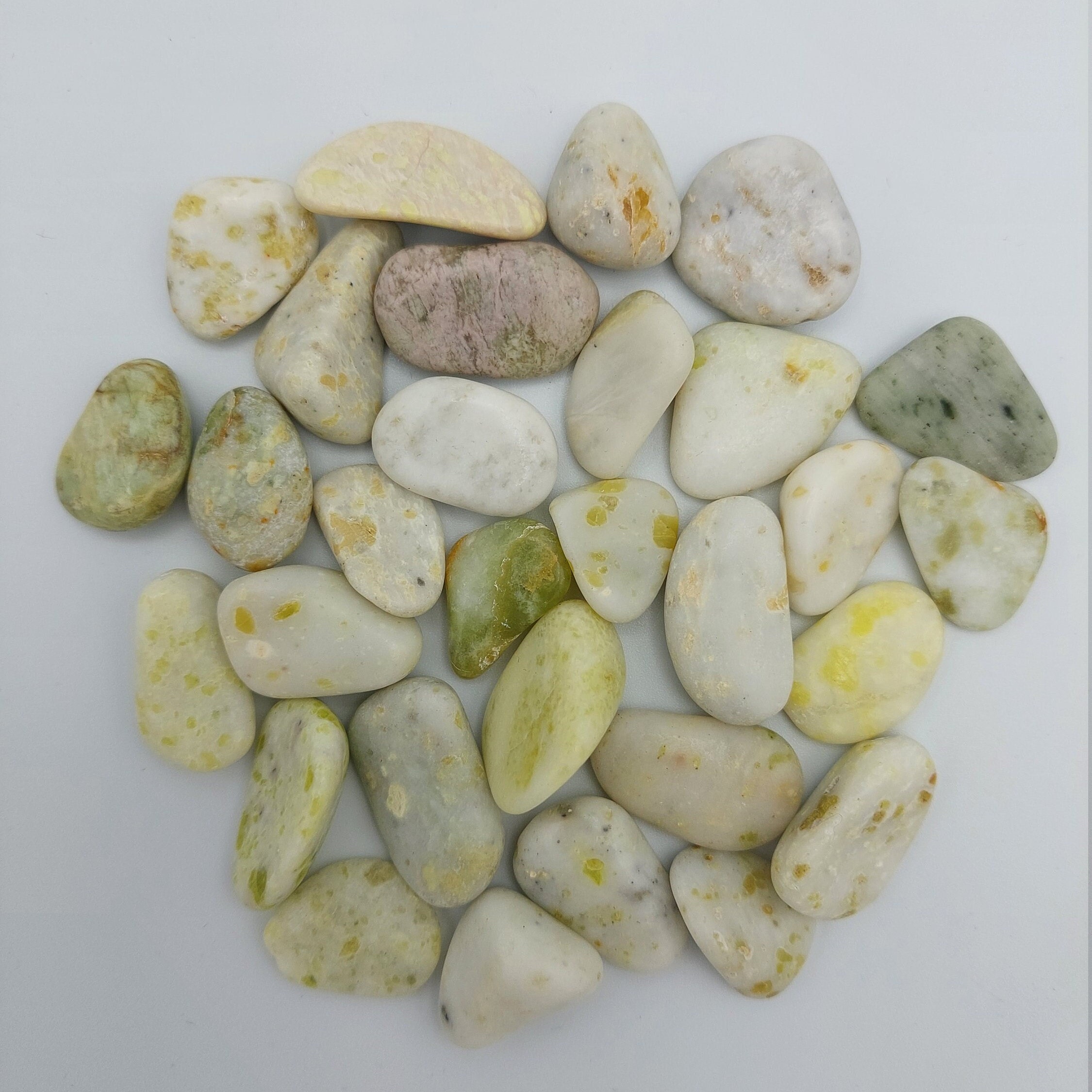 These are natural stones, each one is unique in size, shape and colour and may contain small imperfections.