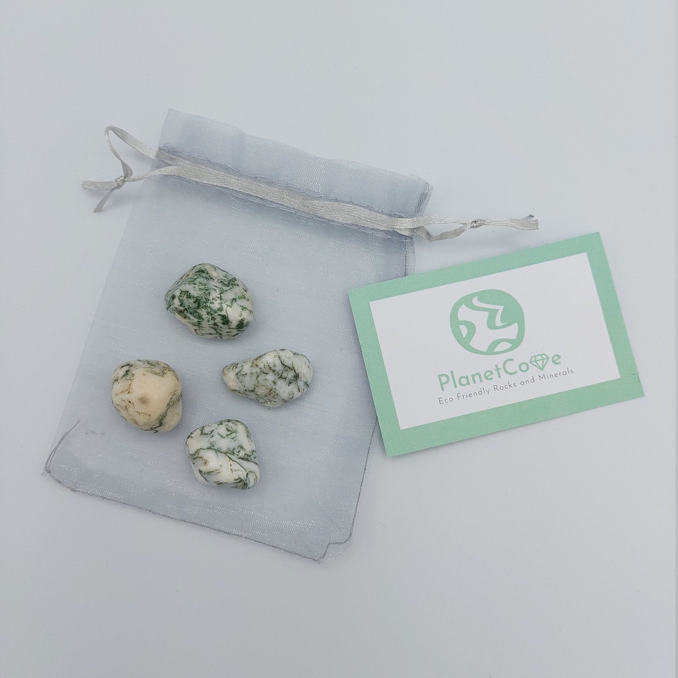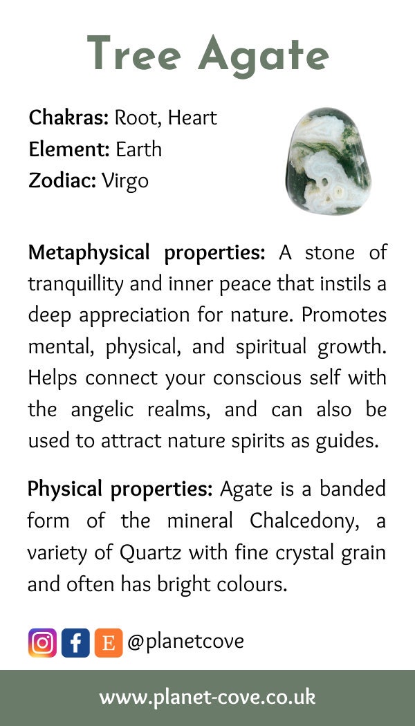 These beautiful tree agate tumbled crystals are pre-owned, reducing the impact on the environment. Your order will be received attractively wrapped in an organza bag with a crystal information card and plastic free packaging.