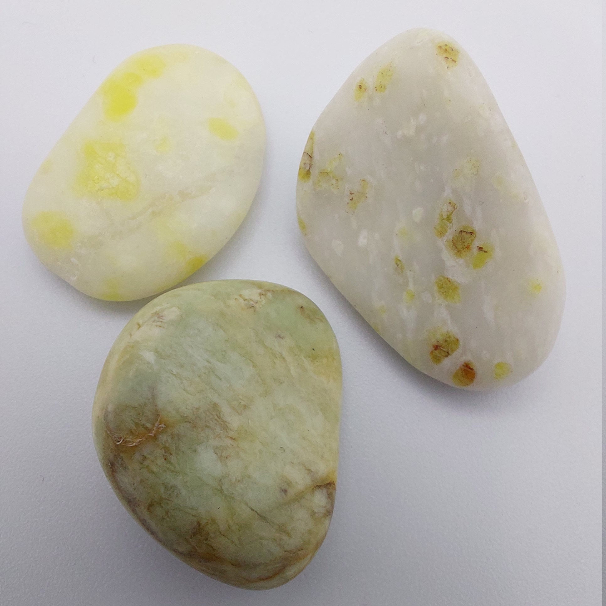 Tumblestones or "tumbled stones" are made by "tumbling" rough crystals, minerals or rocks in a rotating barrel with different grades of grit and polish, similar to the natural processes that produce “sea-glass”.