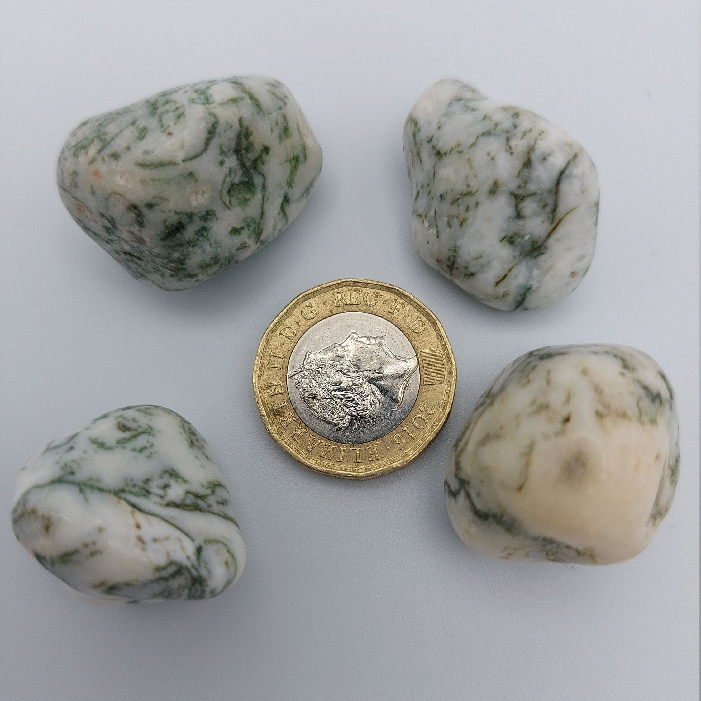 B) Tree Agate light inclusions / small: Each stone is 1.5-2.5cm; approx. 2-8g. You will receive a random selection of 5.