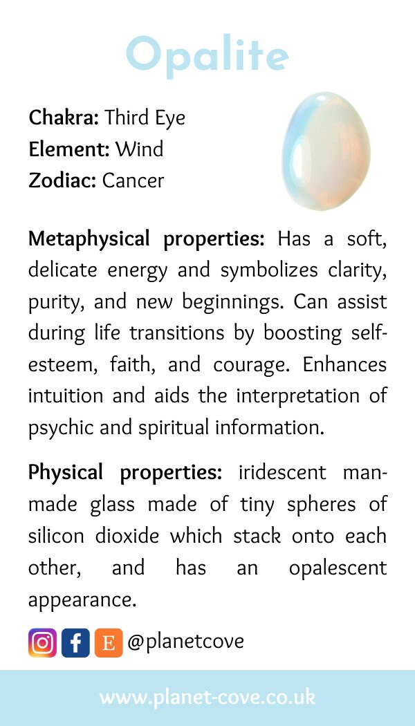Opalite is said to bring peace, harmony and happy dreams and to help boost your mood.
