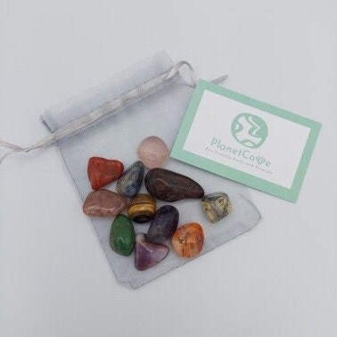 The stones are mixed, so you will receive a range of different minerals such as amethyst, rose quartz, rock crystal, smokey quartz, tigers eye, marble, sodalite, fossil wood, jasper, citrine, carnelian, and much much more. Ideal for children's gifts, parties and more.