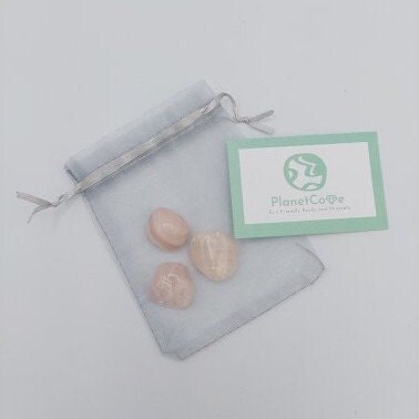 Buy either one or a set of 3 medium (approx. 2-3 cm) Rose Quartz tumblestones. These make fantastic gifts, bridesmaid thank you gifts, wedding favours or addition to your crystal collection.