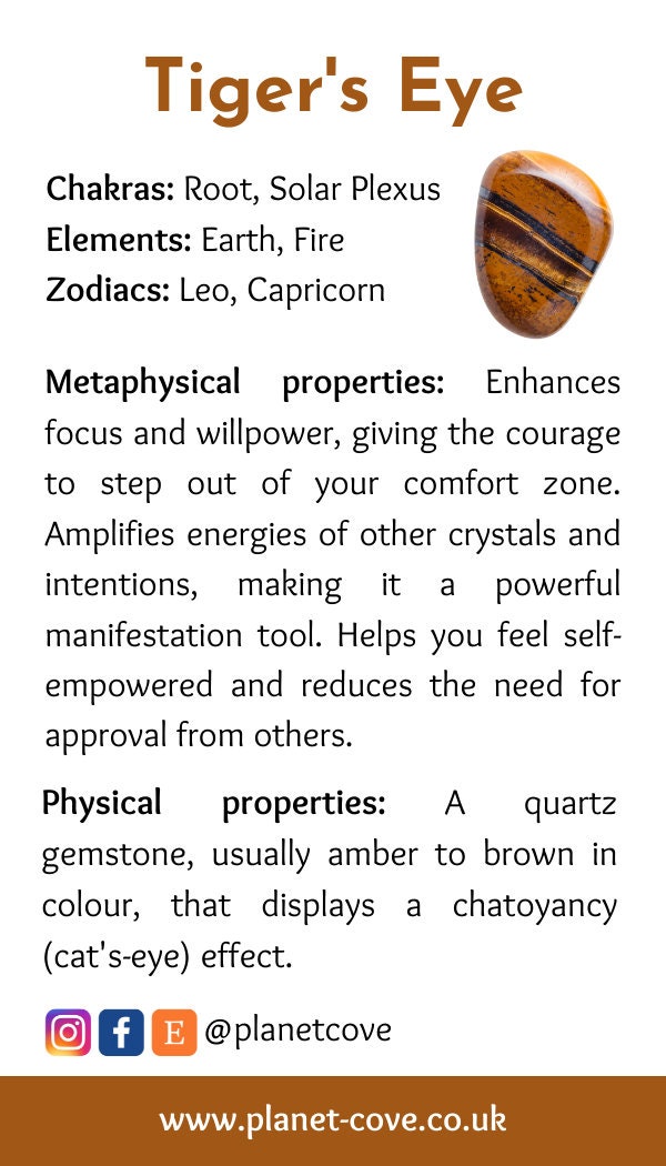 The Tiger’s-Eye symbolizes the tiger’s strength, bravery, and courage. Thought to be particularly good for reducing fear and anxiety.
