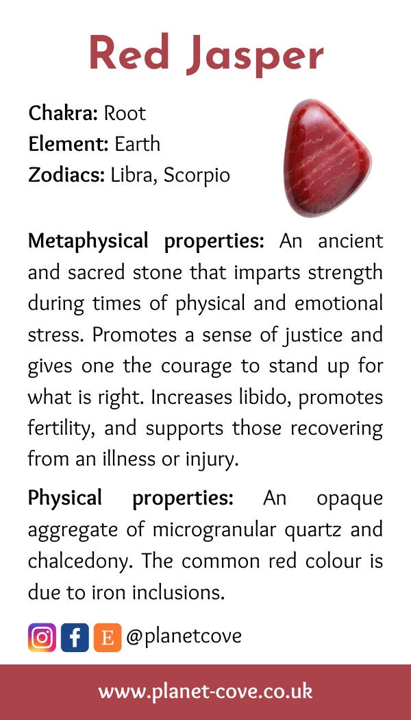 Known as The Endurance Stone, Red Jasper is thought to help keep your focus and strength regardless of the task, especially during times of stress. It is thought to help people who feel they lack focus, so could be good for exams or competitive sports.