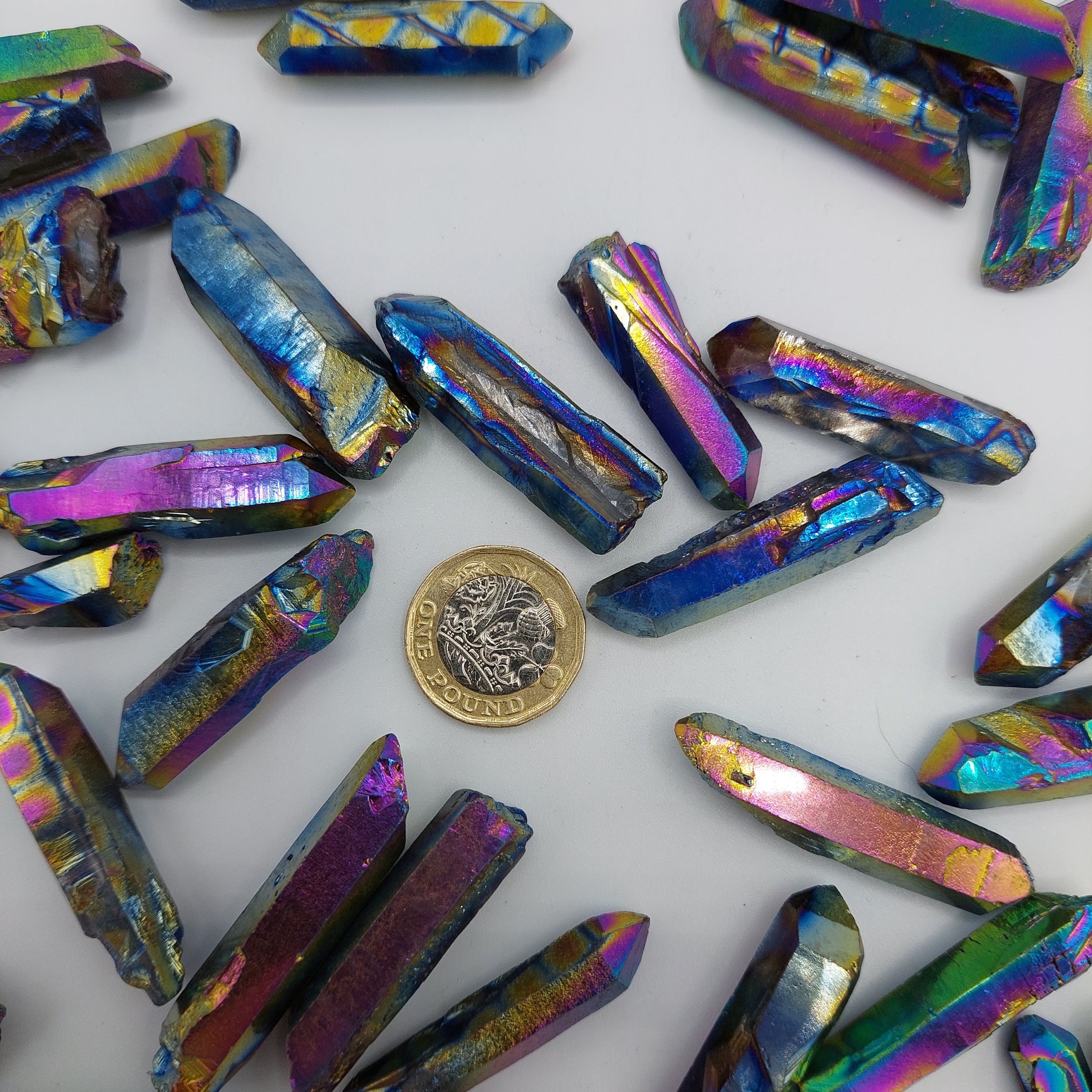 This listing is for a one celestial rainbow aura crystal point (approx. 4-5 cm). These make fantastic gifts, bridesmaid thank you gifts, wedding favours or addition to your crystal collection.