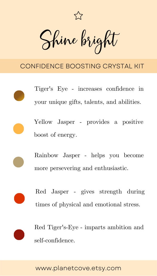 Shine Bright like a diamond! In this crystal wellbeing kit you will receive five beautiful crystals that are thought to promote confidence.