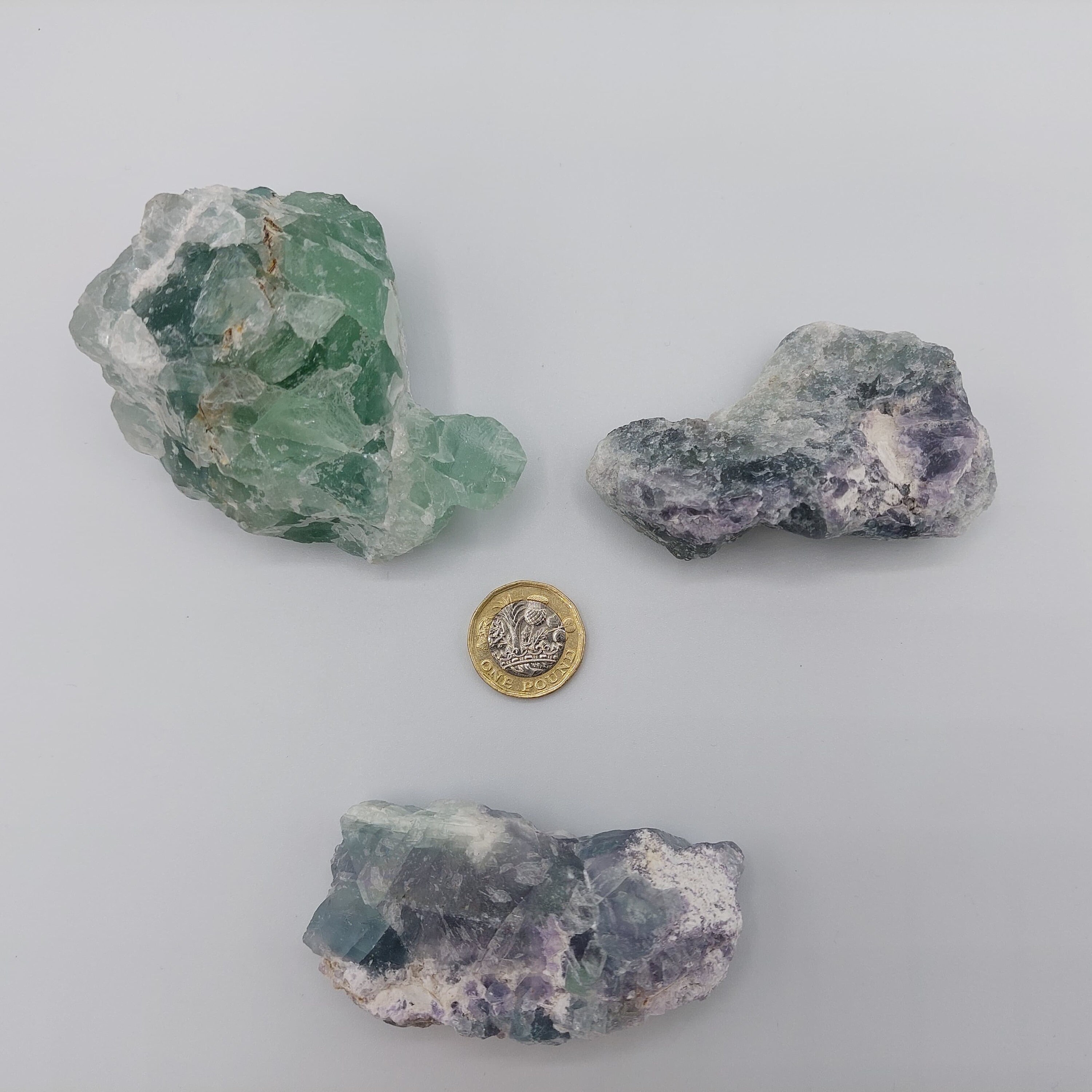 These pretty green and purple fluorite crystal chunks would make an excellent gift for any crystal lover or a great addition to your personal collection.