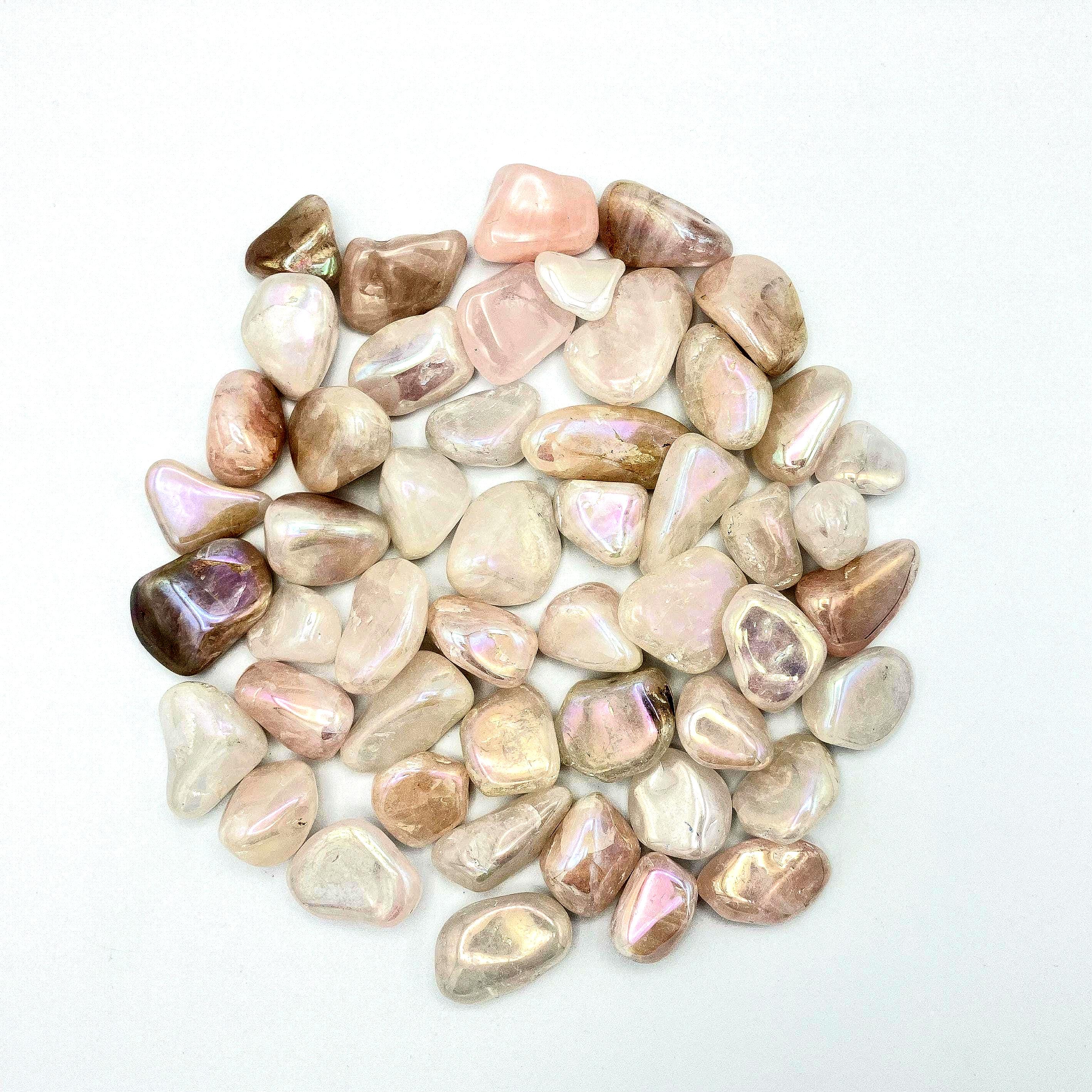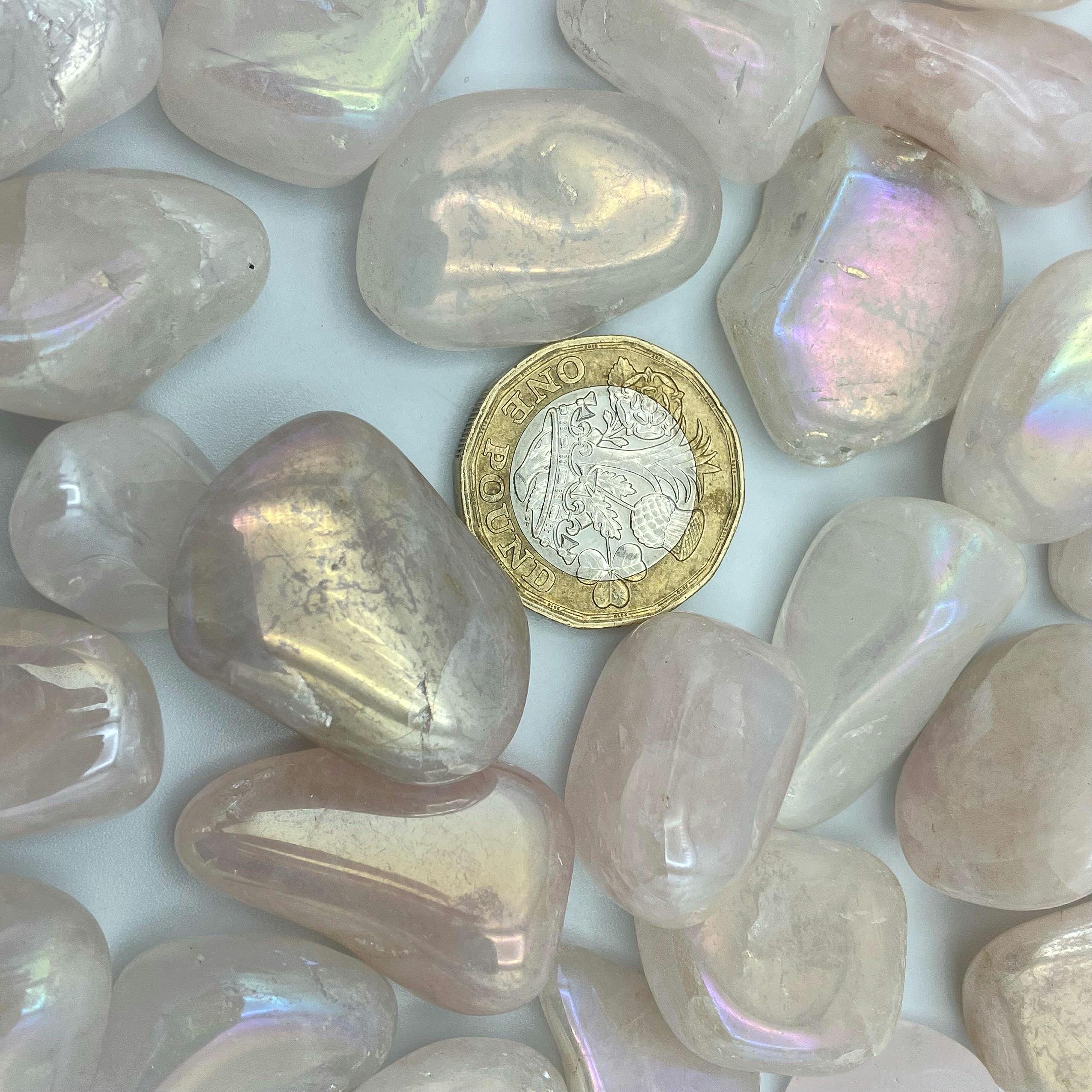 This listing is for one Rose Aura Quartz tumblestone (approx. 1.5-2 cm). These pretty tumbled crystals make fantastic gifts, bridesmaid thank you gifts, wedding favours or addition to your crystal collection.